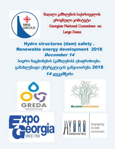 ენერგეტიკის, ელექტროენერგისა და ტელეკომუნიკაციების მე-5 საერთაშორისო გამოფენის ელკომ კავკასიის ფარგლებში, და „საქართველოს მაღალი კაშხლების ეროვნული კომიტეტის“ (Gncold)-ის ორგანიზებით 2018 წლის 14 დეკემბერს საგამოფენო ცენტრ ექსპო ჯორჯიაში ტარდება საერთაშორისო კომფერენცია: „ჰიდრო ნაგებობების (კაშხლების) უსაფრთხოება. განახლებადი ენერგეტიკის განვითარება 2018“.